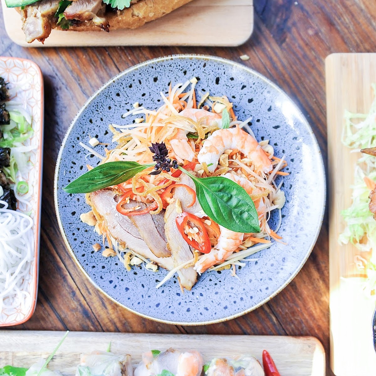If you're in the mood for something lighter, the Pork & Prawn Papaya Salad is the perfect choice. Crisp, fresh, and tangy, this dish combines the sweetness of prawns with the savory punch of pork, all complemented by the crunchy papaya and a vibrant dressing. For a snack or an appetizer, you can’t go wrong with the Grilled Viet Bread, which brings together the crispy texture of toasted bread with savory fillings-a delightful treat on its own or as a side.